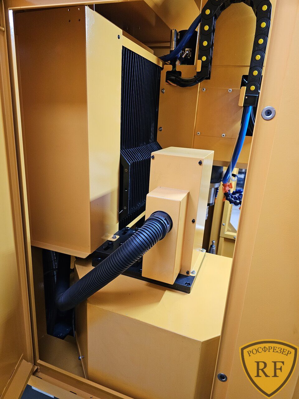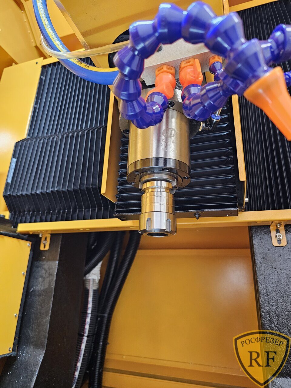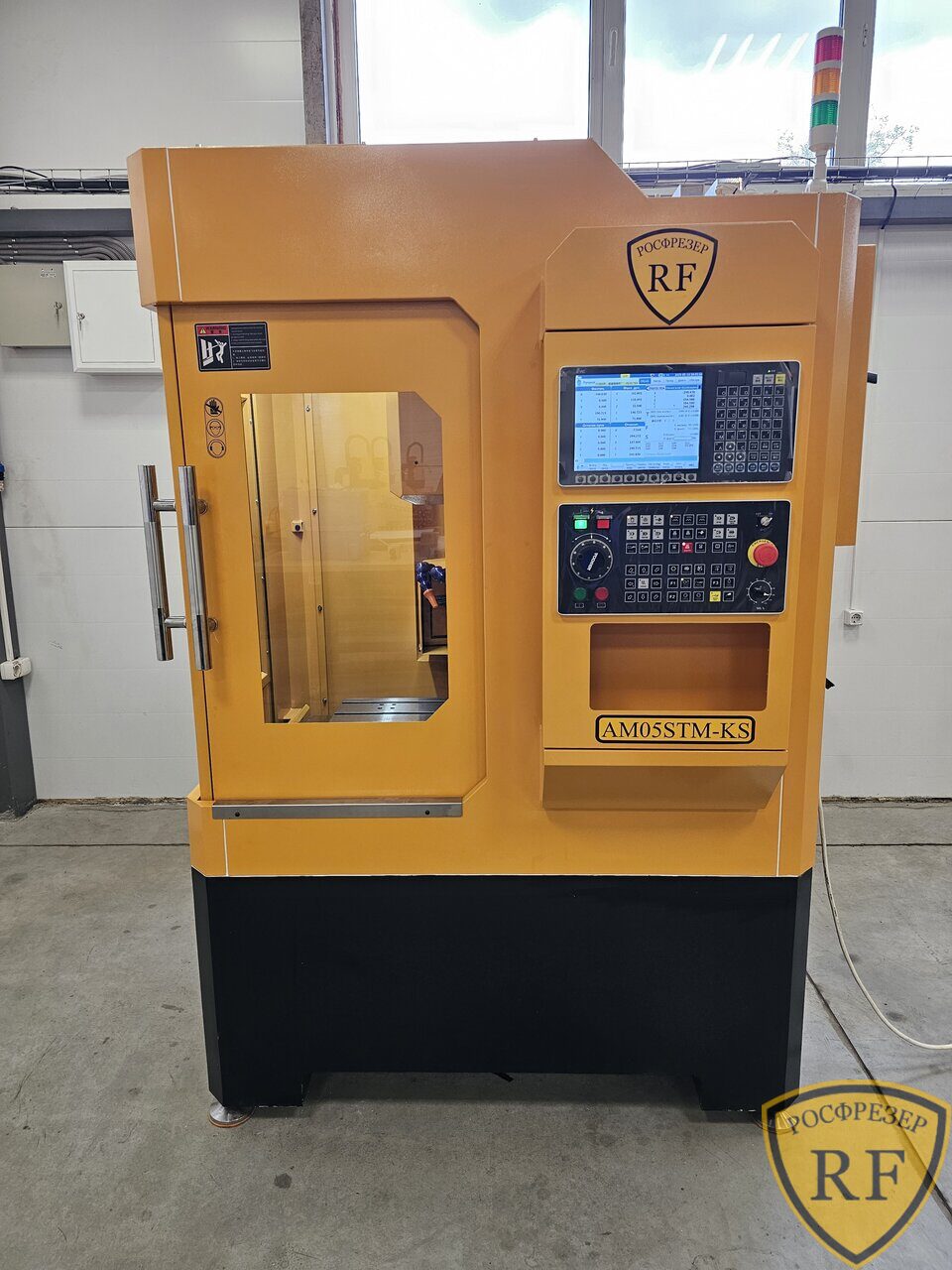 Станок рассчитан на работу с металлами. Станок имеет автоматическую смену инструмента на 8 позиций с оправками BT30, подвижный стол, коробчатый портал, коробчатые стойки портала увеличенного сечения, усиленную раму. Все эти элементы сделаны из чугуна, так же как и составляющие части оси Z, включая кронштейн шпинделя. Система подачи СОЖ в зону реза. Автоматическая система смазки. Закрытый кабинет.